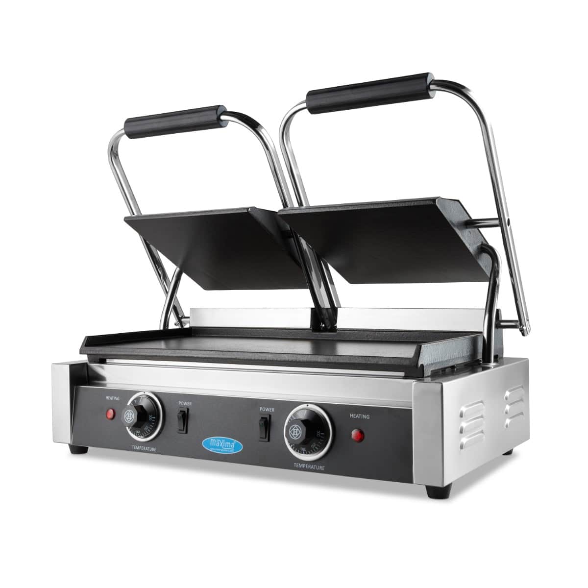 På de glatte, tunge støbejernsbageplader kan du grille og stege de lækreste sandwich, panini og andre retter. Fordi kontaktgrillen har dobbelte stegeplader, kan du nemt tilberede mad til store grupper af mennesker. Den er perfekt til servering af fisk, gr
